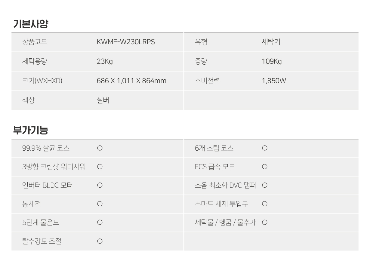 KWMF-W230LRPS+KDRC-C100LRPS 스마트렌탈 [캐리어] 결합2종 드럼 세탁기 23kg 실버+히트펌프 건조기 10kg 실버 (KWMF-W230LRPS+KDRC-C100LRPS) 제품분류 세탁기패키지 세탁기 건조기 건조기패키지 용량(총량) 23KG,10KG AS기간 2년 최저 렌탈가 월 45,500 (렌탈가) 60개월 48개월 36개월 할인 제휴카드 보기 렌탈신청 장바구니