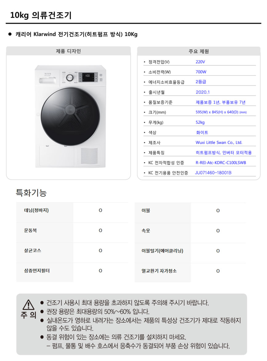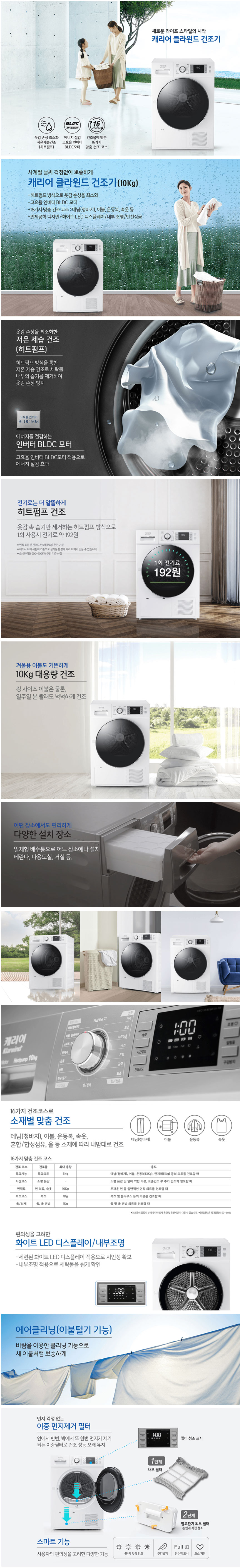 [더함+캐리어]결합3종 안드로이드 QLED TV 65인치 스탠드형+클라윈드 드럼 세탁기 23kg 화이트+클라윈드 히트펌프 건조기 10kg 화이트
