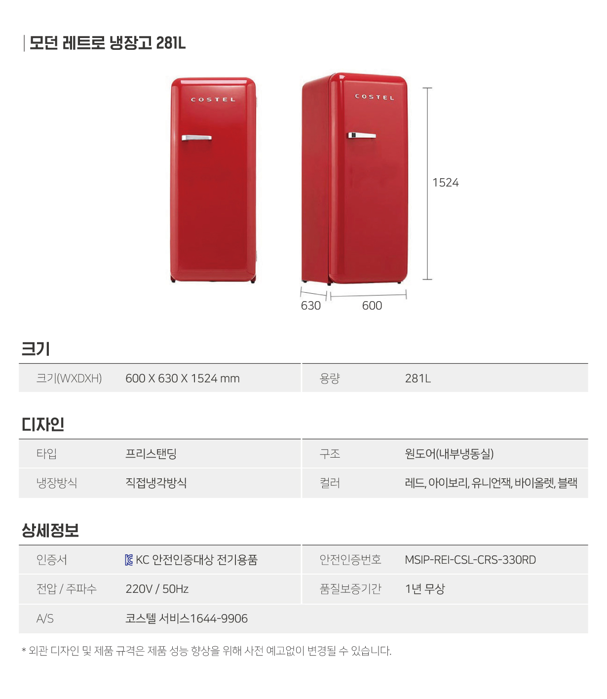 코스텔_냉장고_281L 아이보리