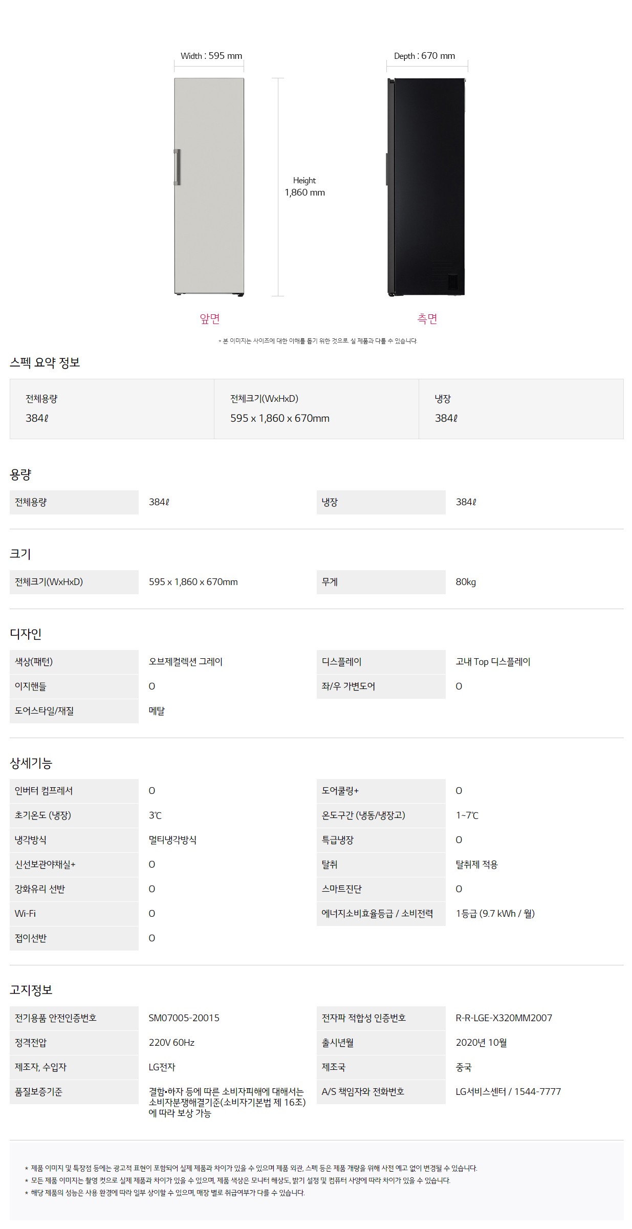 X320MGS CS렌탈 [LG] 오브제컬렉션 컨버터블 냉장고 384L 그레이 제품분류 냉장고 용량(총량) 300L이상 기능 1도어 AS기간 3년 최저 렌탈가 월 40,500 (렌탈가) 48개월 36개월 할인 제휴카드 보기 렌탈신청 장바구니