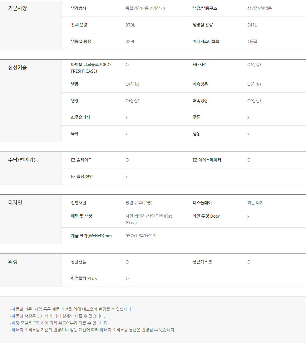 위니아_냉장고_870L_샤인 베이지/샤인 민트