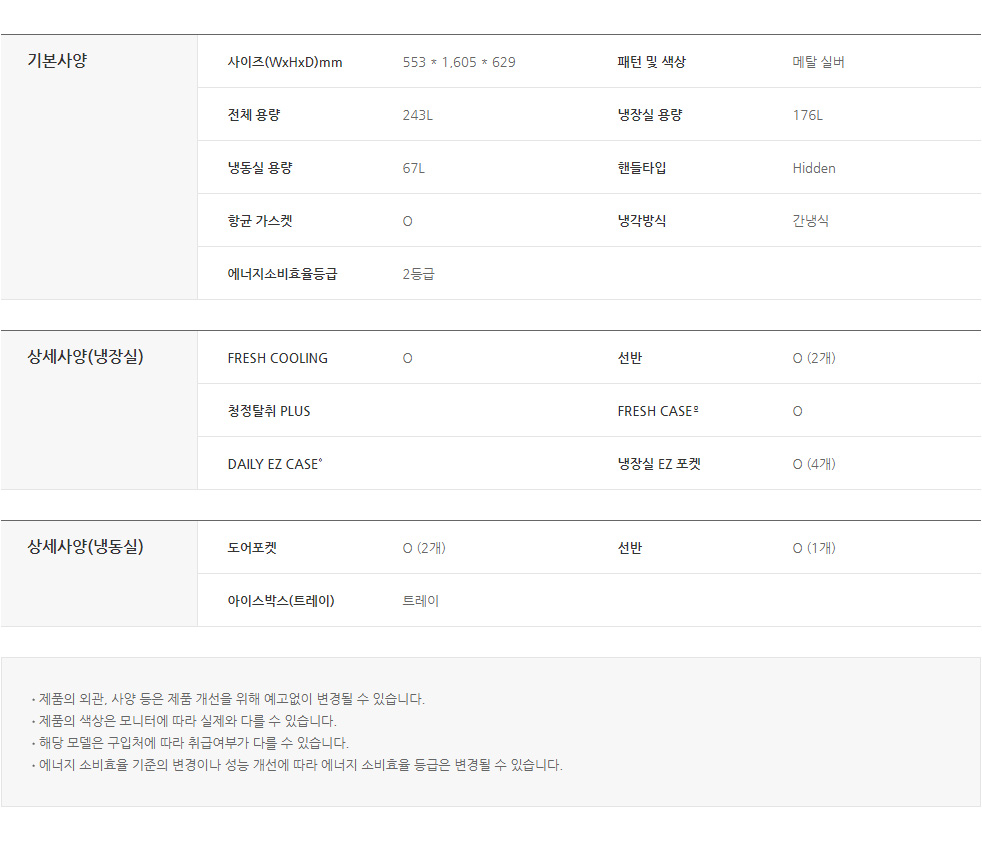 [위니아] 딤채 일반 냉장고 243L 메탈 실버_2등급