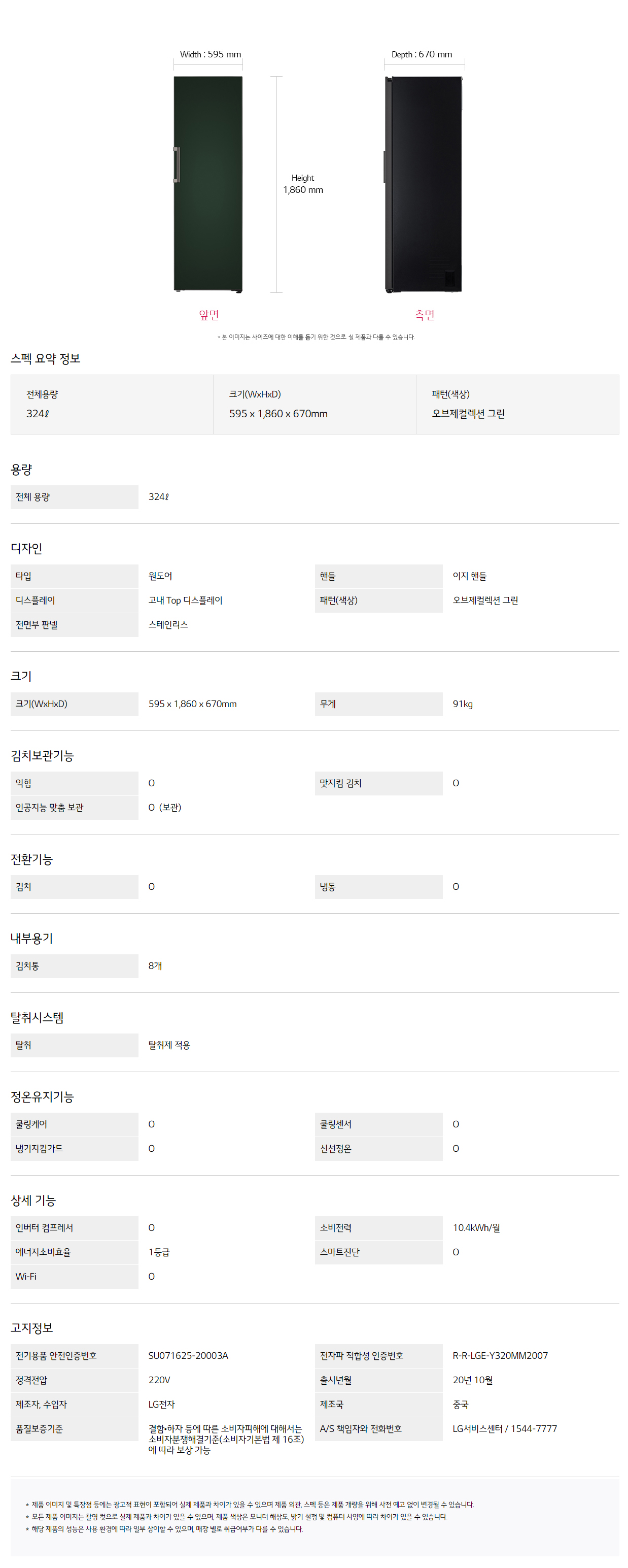 [LG] 오브제컬렉션 컨버터블 김치냉장고 324L 그린