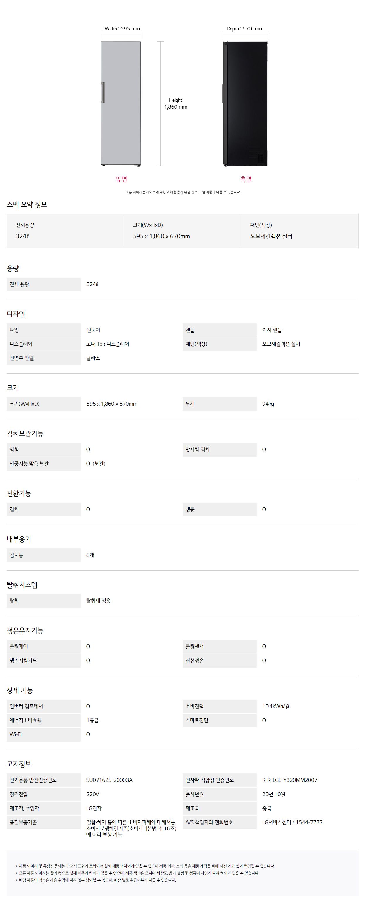 [LG] 오브제컬렉션 컨버터블 김치냉장고 324L 실버