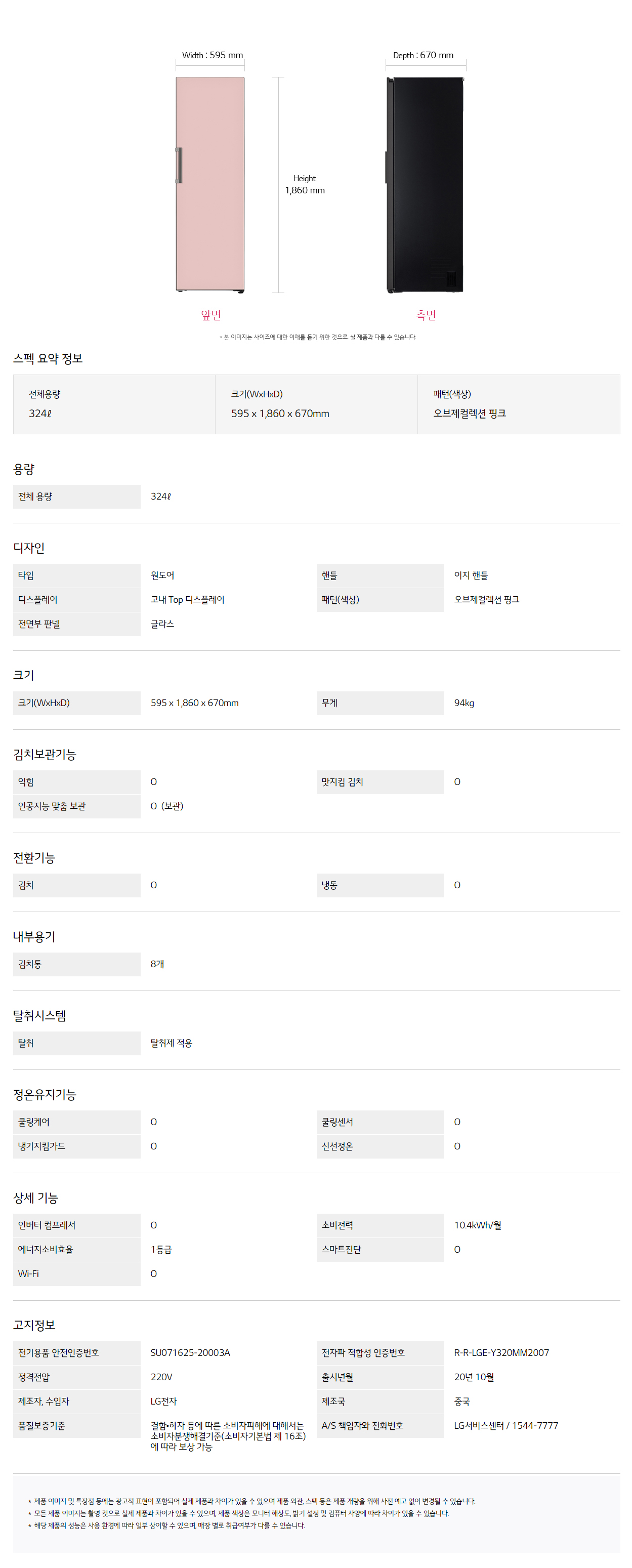 [LG] 오브제컬렉션 컨버터블 김치냉장고 324L 핑크