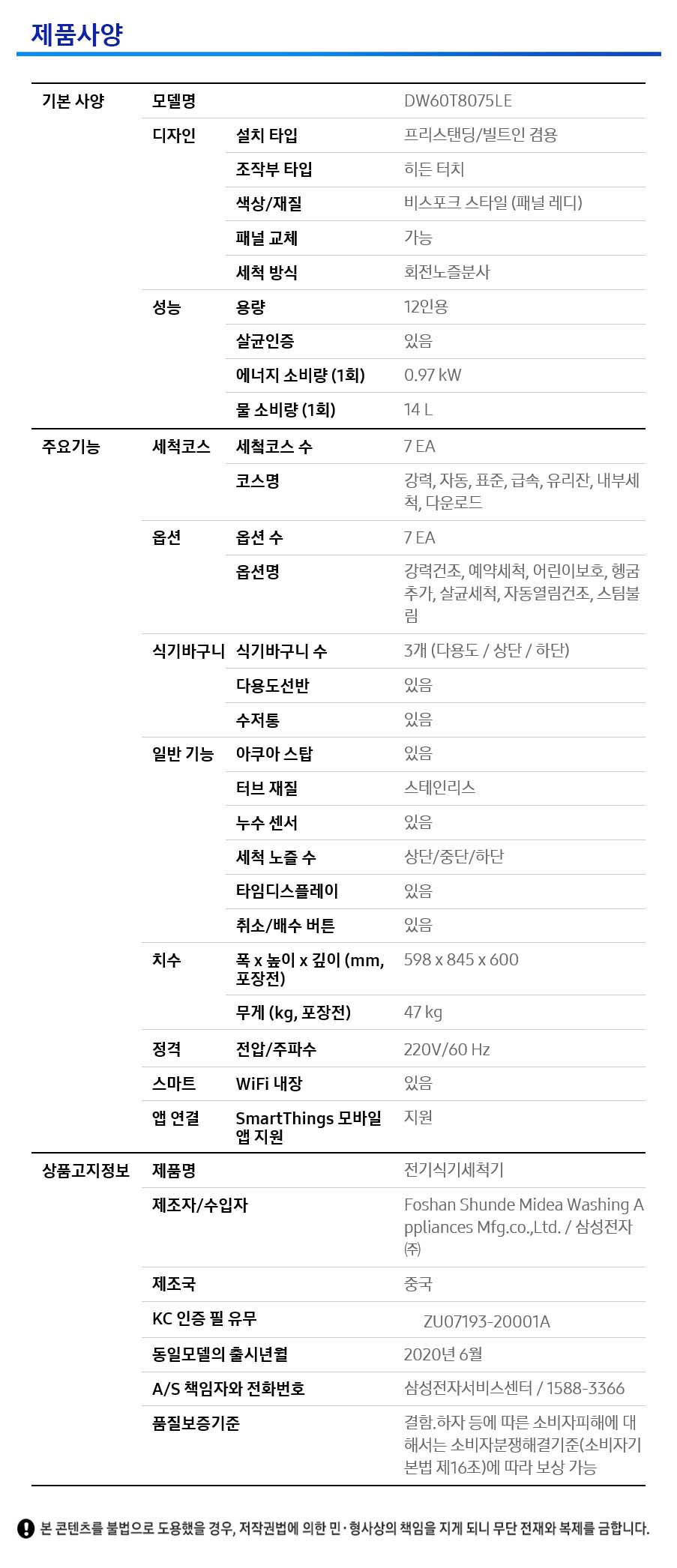 DW60T8075LE LG헬로 삼성_식기세척기_12인용 글램화이트 제품분류 식기세척기 AS기간 3년 최저 렌탈가 월 40,700 (렌탈가) 제휴카드 할인가 월 (렌탈가) 60개월 48개월 36개월 할인 제휴카드 보기 렌탈신청 장바구니