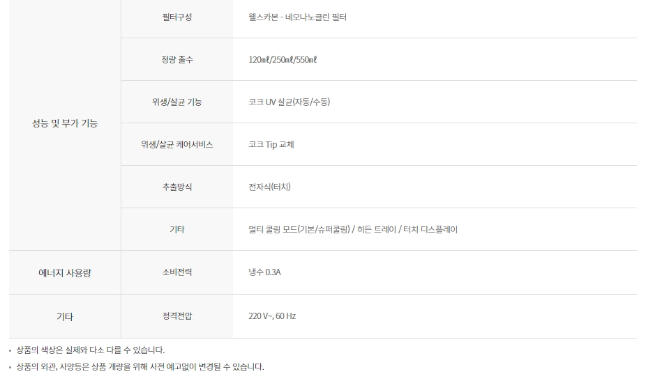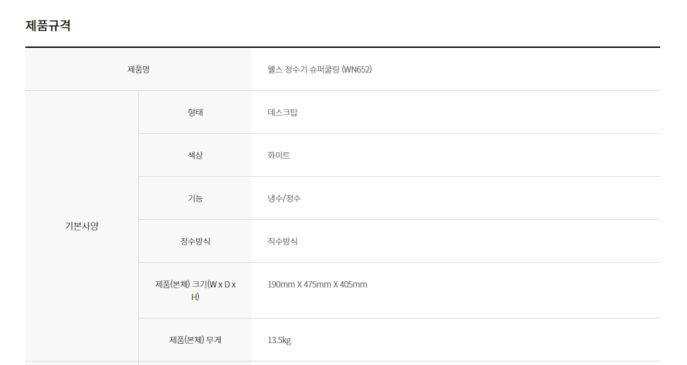 WN652 교원웰스 웰스 정수기 슈퍼쿨링 (셀프관리) 제품분류 정수기 정수방식 직수형 기능 냉수전용 AS기간 렌탈기간내 최저 렌탈가 월 14,310 (렌탈가) 5년 3년 보상할인 정상 할인 제휴카드 보기 렌탈신청 장바구니
