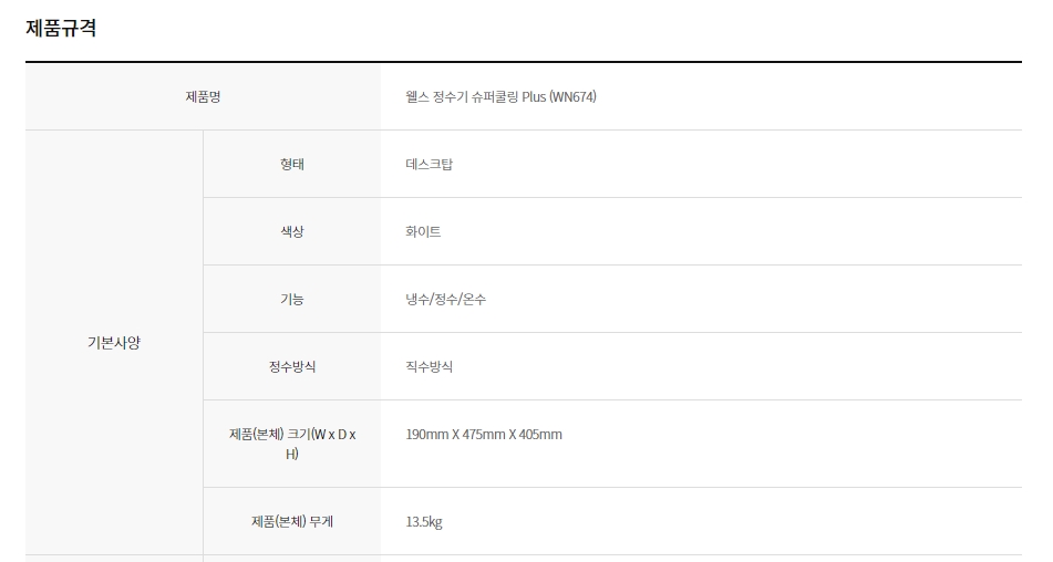 웰스 정수기 슈퍼쿨링 Plus (셀프관리)