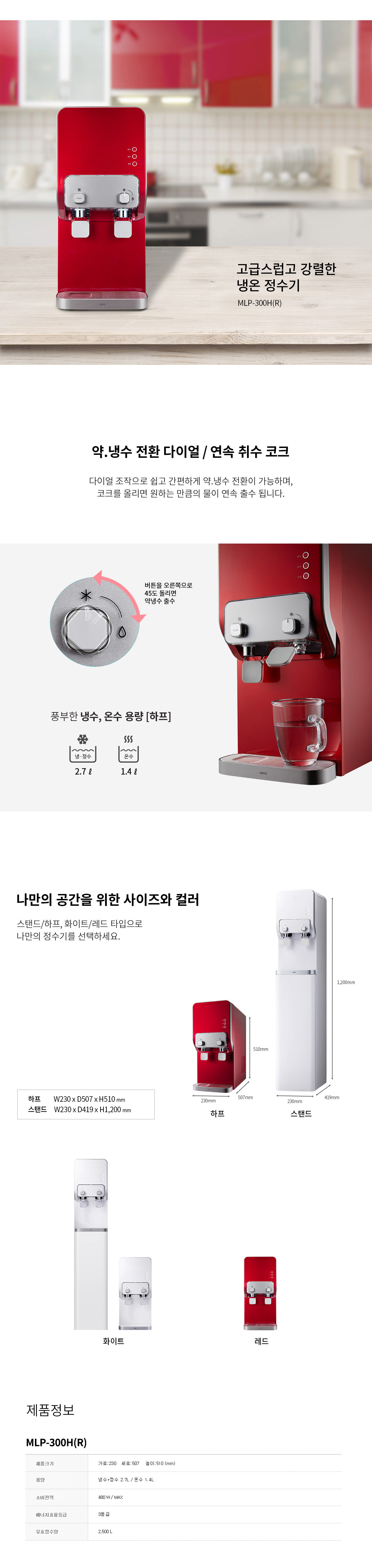 MLP-300H(레드) 유버스 냉온정수기 제품분류 정수기 정수방식 탱크형 기능 냉온정 AS기간 렌탈기간내 최저 렌탈가 월 19,900 (렌탈가) 제휴카드 할인가 월 (렌탈가) 5년 4년 3년 할인 제휴카드 보기 렌탈신청 장바구니