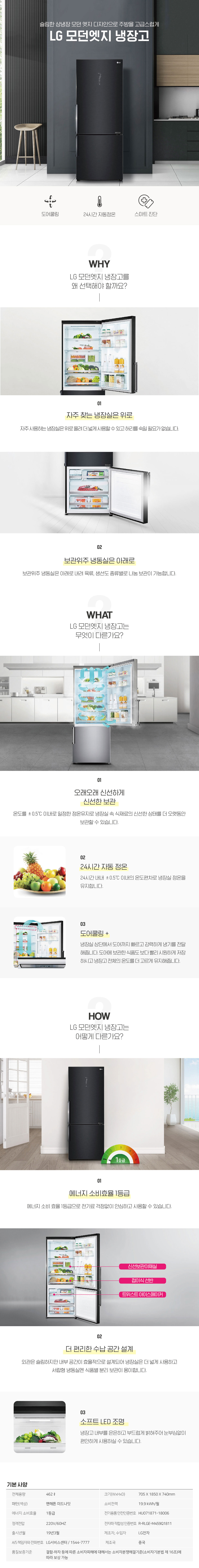 LG 모던엣지 일반냉장고 맨해튼미드나잇 462L