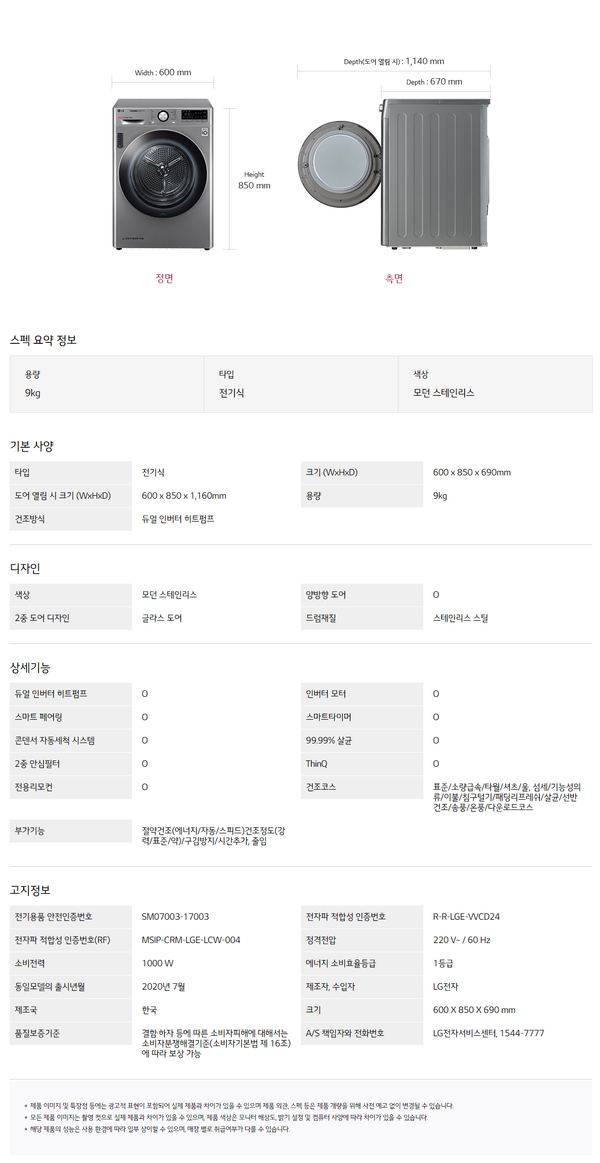RH9VV CS렌탈 [LG] 전기식 건조기 듀얼 인버터 히트펌프 9KG 모던 스테일리스 제품분류 건조기 용량(총량) 09KG AS기간 3년 최저 렌탈가 월 40,500 (렌탈가) 48개월 36개월 할인 제휴카드 보기 렌탈신청 장바구니