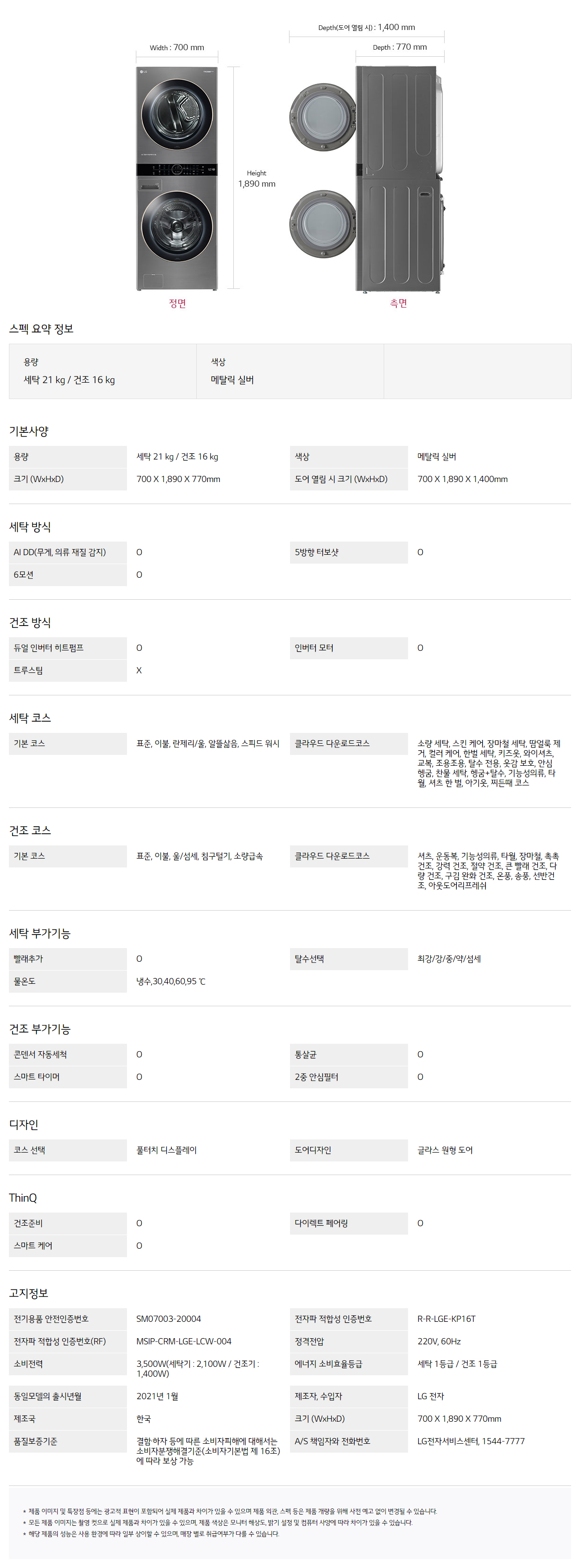 [LG] TROMM 워시타워 원바디 세탁21kg+건조16kg 메탈릭 실버