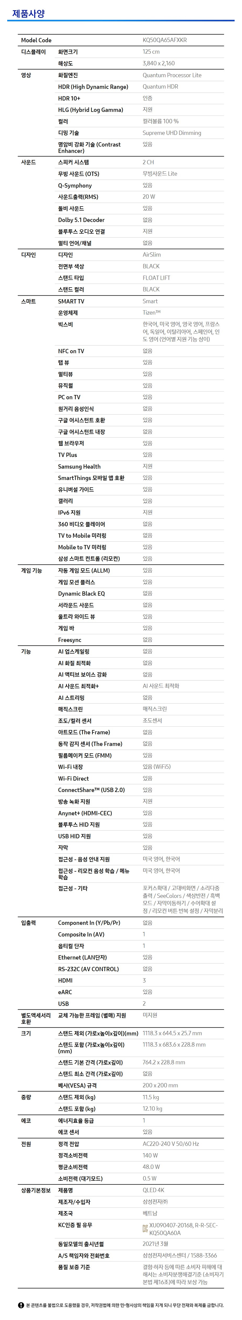 KQ50QA65AFXKR LG헬로 삼성_QLED_50인치 제품분류 TV 제품규격 50인치 AS기간 3년 최저 렌탈가 월 33,500 (렌탈가) 제휴카드 할인가 월 (렌탈가) 60개월 48개월 36개월 할인 제휴카드 보기 렌탈신청 장바구니