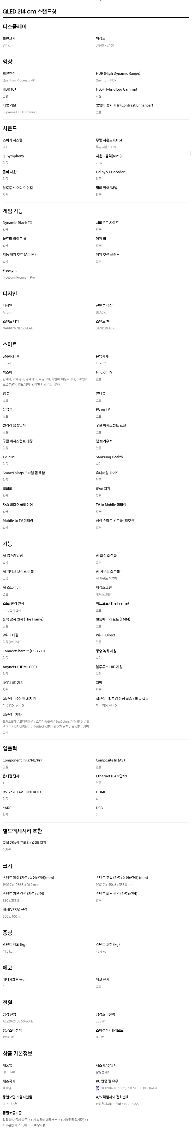 KQ85QA70AFXKR 웰릭스 삼성 QLED TV 85인치 제품분류 TV 제품규격 85인치 AS기간 3년 최저 렌탈가 월 138,400 (렌탈가) 제휴카드 할인가 월 (렌탈가) 60개월 48개월 36개월 스탠드 벽걸이 할인 제휴카드 보기 렌탈신청 장바구니