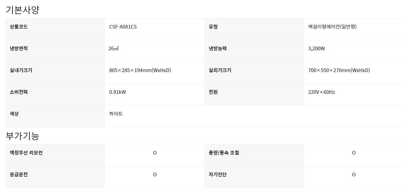 [캐리어] 정속형 벽걸이 에어컨 8평형