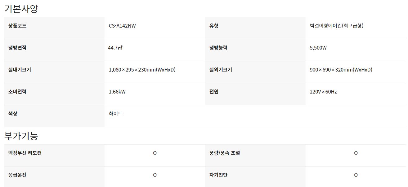 CS-A142NW CS렌탈 [캐리어] 정속형 벽걸이 에어컨 14평형 제품분류 에어컨 AS기간 3년 최저 렌탈가 월 24,600 (렌탈가) 60개월 48개월 36개월 할인 제휴카드 보기 렌탈신청 장바구니