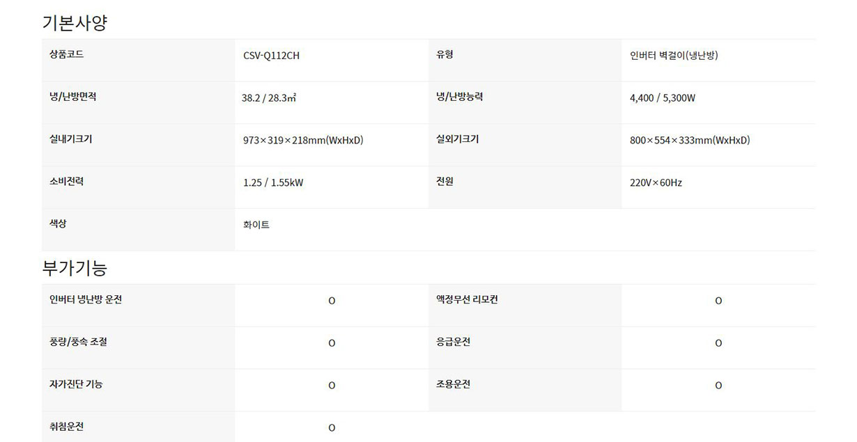 CSV-Q112CH_a 스마트렌탈 [캐리어] 냉난방기 벽걸이 스탠다드형 11평형 제품분류 냉난방기 AS기간 2년 최저 렌탈가 월 23,900 (렌탈가) 60개월 48개월 36개월 할인 제휴카드 보기 렌탈신청 장바구니