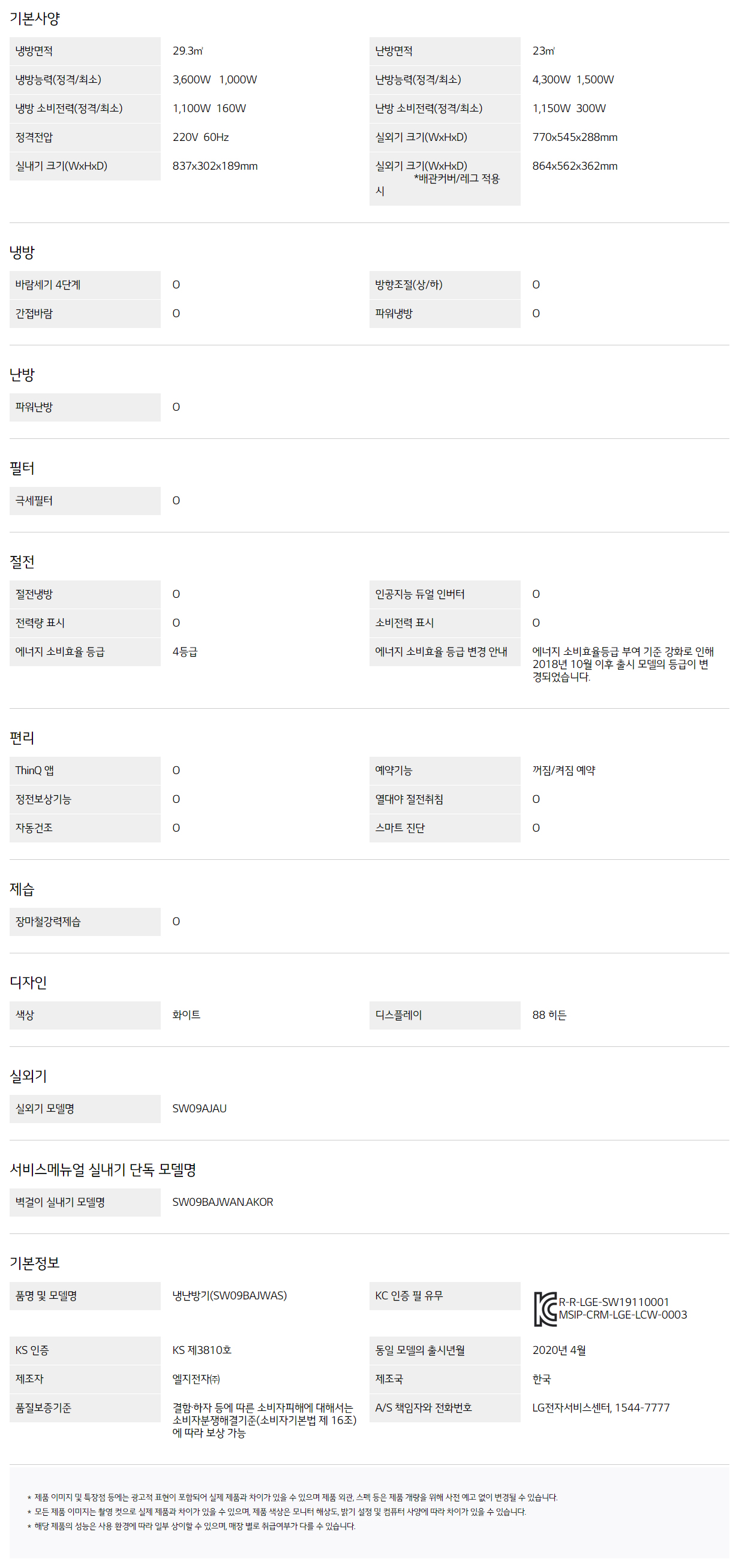 SW09BAJWAS CS렌탈 [LG] 휘센 냉난방 에어컨 벽걸이형 9평 제품분류 냉난방기 AS기간 3년 최저 렌탈가 월 30,500 (렌탈가) 60개월 48개월 36개월 할인 제휴카드 보기 렌탈신청 장바구니