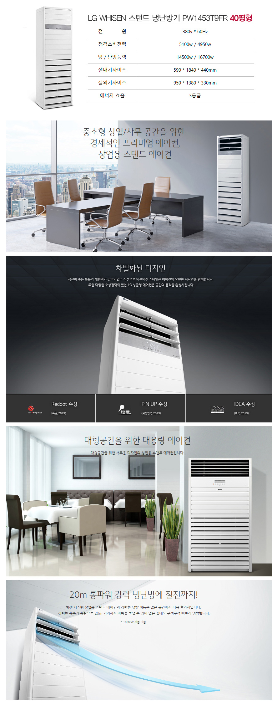 PW1453T9FR CS렌탈 [LG] 휘센 스탠드형 상업용 냉난방기 40평형(삼상) 제품분류 냉난방기 AS기간 3년 최저 렌탈가 월 88,500 (렌탈가) 60개월 48개월 36개월 할인 제휴카드 보기 렌탈신청 장바구니