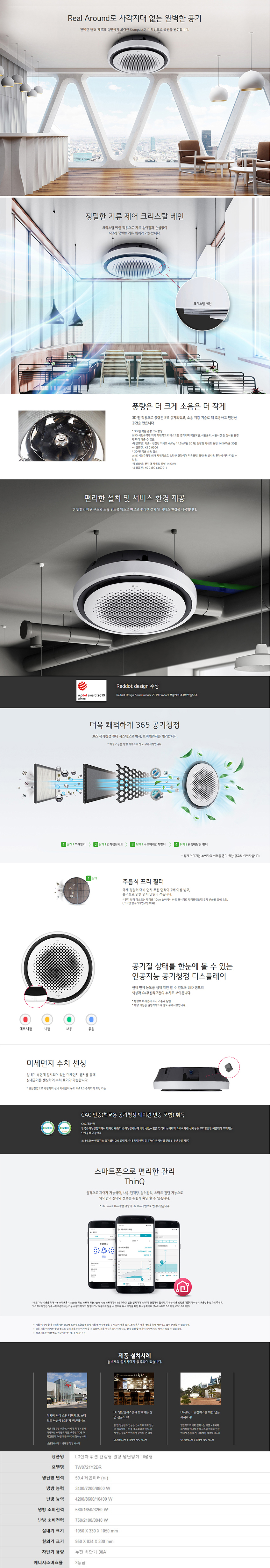 TW0720Y2BR CS렌탈 [LG] 원형 블랙 천장형 냉난방기 18평형(단상) 제품분류 냉난방기 AS기간 3년 최저 렌탈가 월 80,500 (렌탈가) 60개월 48개월 36개월 할인 제휴카드 보기 렌탈신청 장바구니