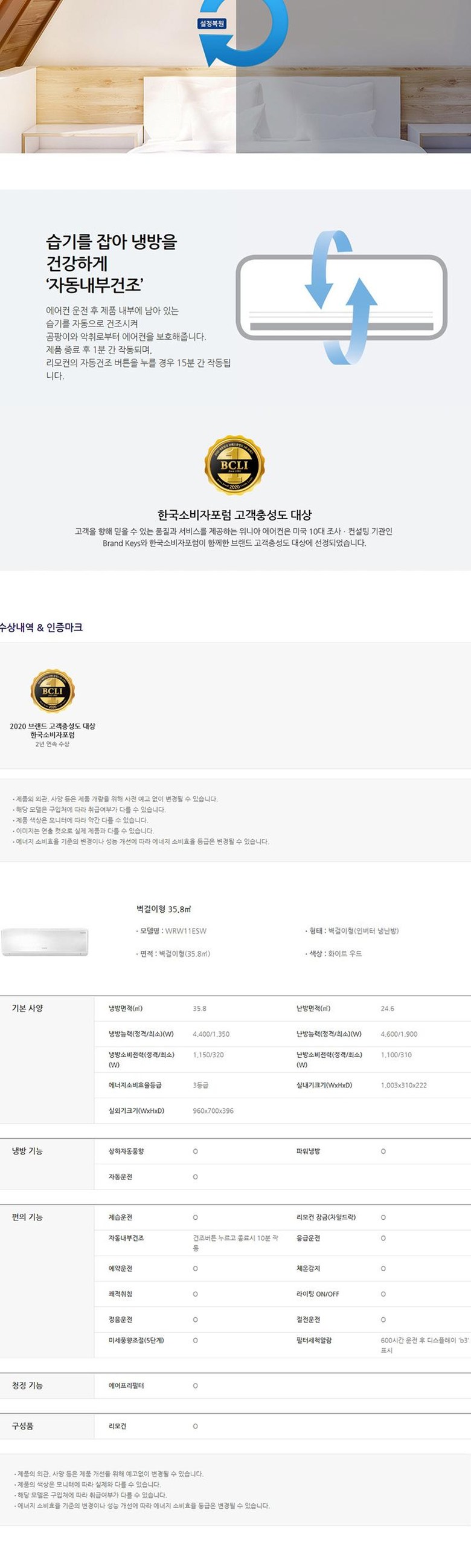 WRW11ESW LG헬로 위니아_냉난방기_11평 제품분류 냉난방기 용량(총량) 11평형 AS기간 1년 최저 렌탈가 월 29,900 (렌탈가) 제휴카드 할인가 월 (렌탈가) 60개월 48개월 36개월 할인 제휴카드 보기 렌탈신청 장바구니