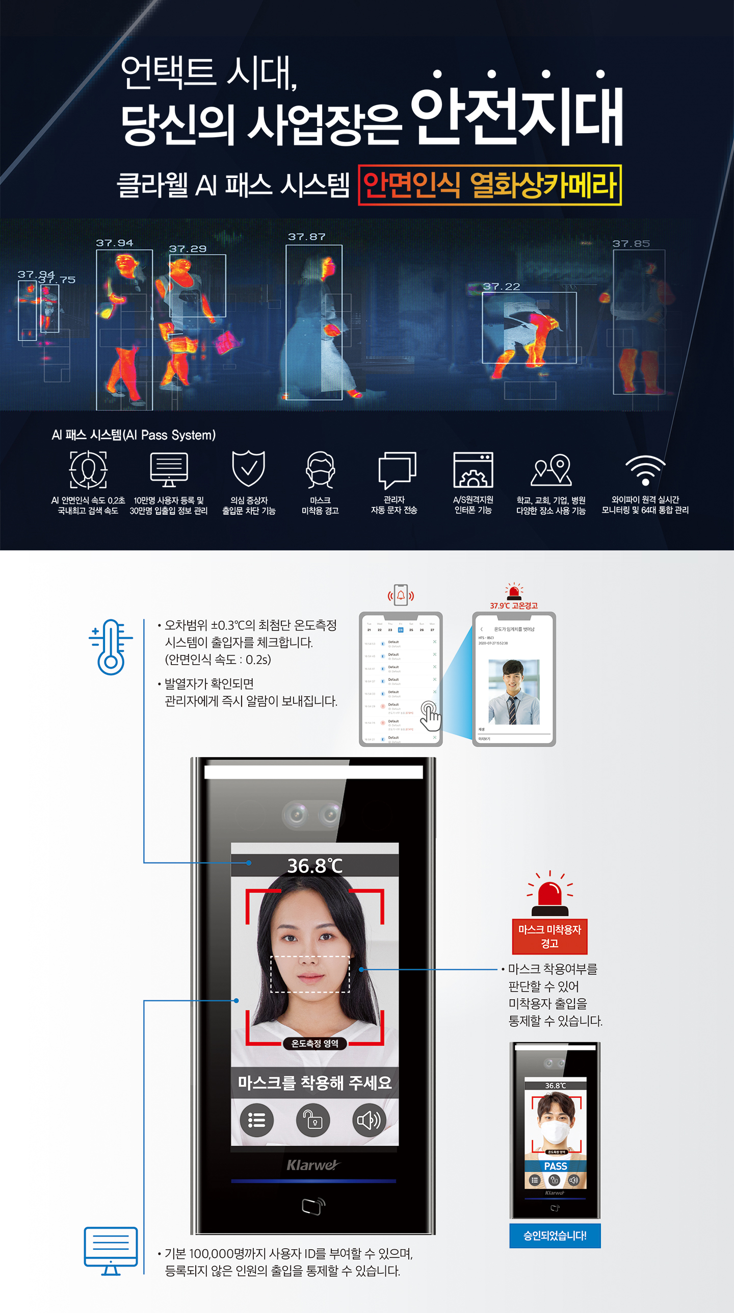 [클라웰] 안면인식 열화상카메라 (사업자전용)