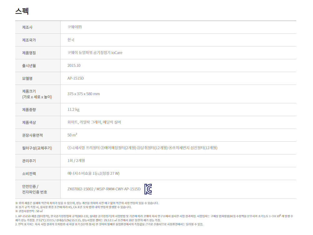 코웨이 듀얼파워 공기청정기 IoCare 라일락 그레이 15평형
