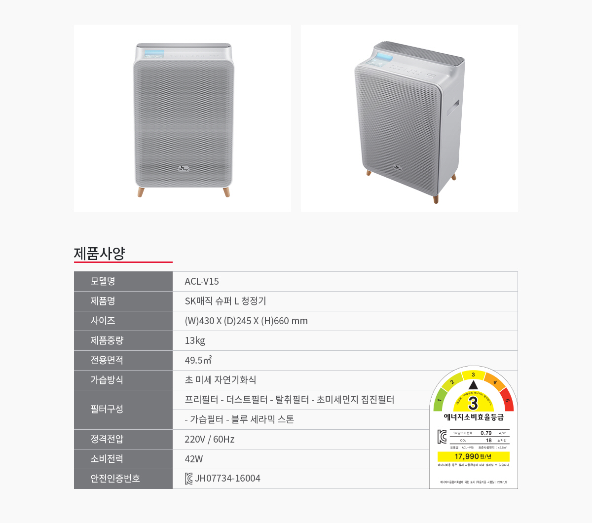 ACL-V15 에스케이 가습공기청정기15평형 제품분류 청정기 기능 가습기능 AS기간 렌탈기간내 최저 렌탈가 월 29,900 (렌탈가) 제휴카드 할인가 월 (렌탈가) 3년 할인 제휴카드 보기 렌탈신청 장바구니