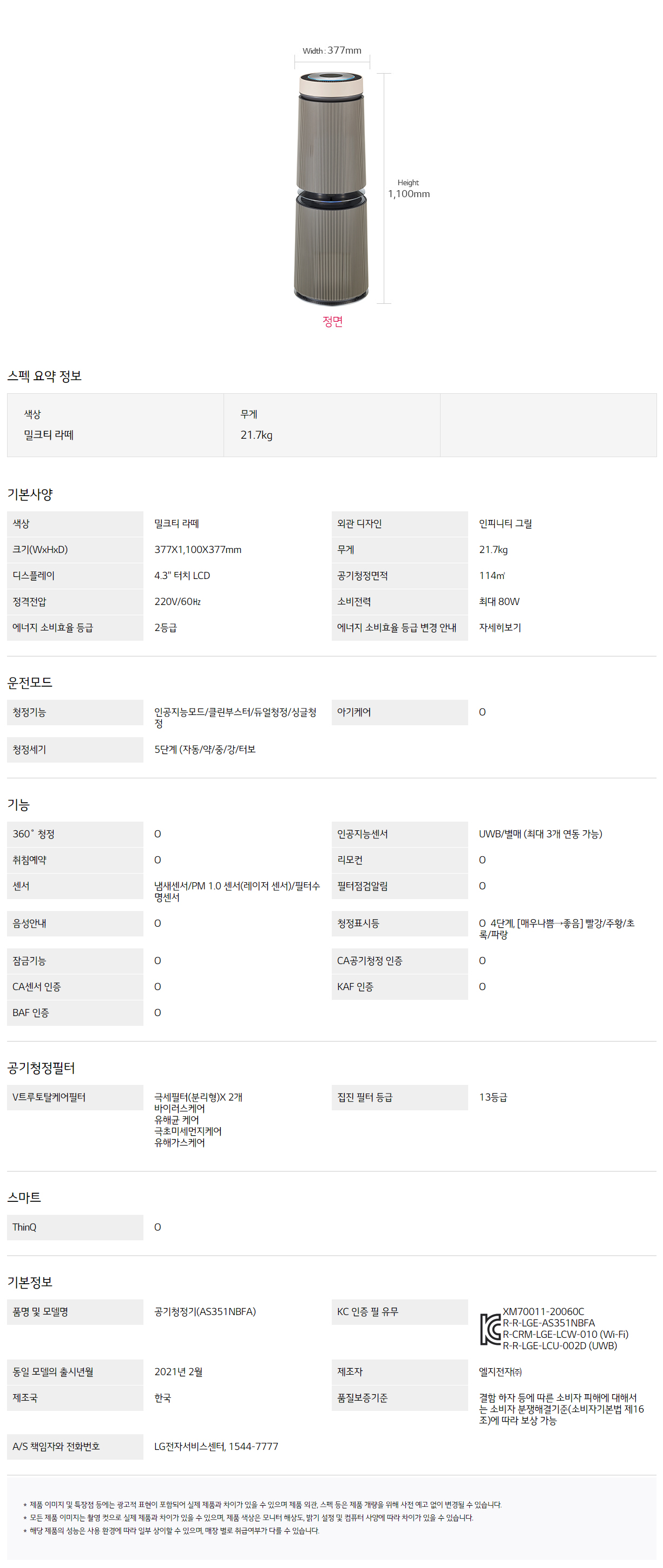 AS351NBFA CS렌탈 [LG] 퓨리케어 360 공기청정기 알파 35평형 밀크티 라떼 제품분류 청정기 AS기간 3년 최저 렌탈가 월 59,400 (렌탈가) 48개월 36개월 할인 제휴카드 보기 렌탈신청 장바구니