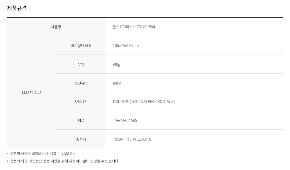 CL796 교원웰스 웰스 LED마스크 750 제품분류 LED마스크 AS기간 렌탈기간내 최저 렌탈가 월 18,900 (렌탈가) 4년 보상할인 정상 할인 제휴카드 보기 렌탈신청 장바구니