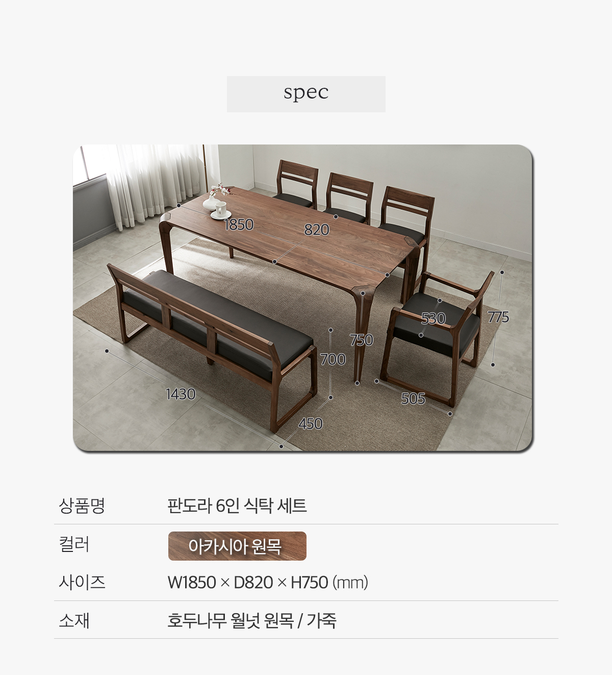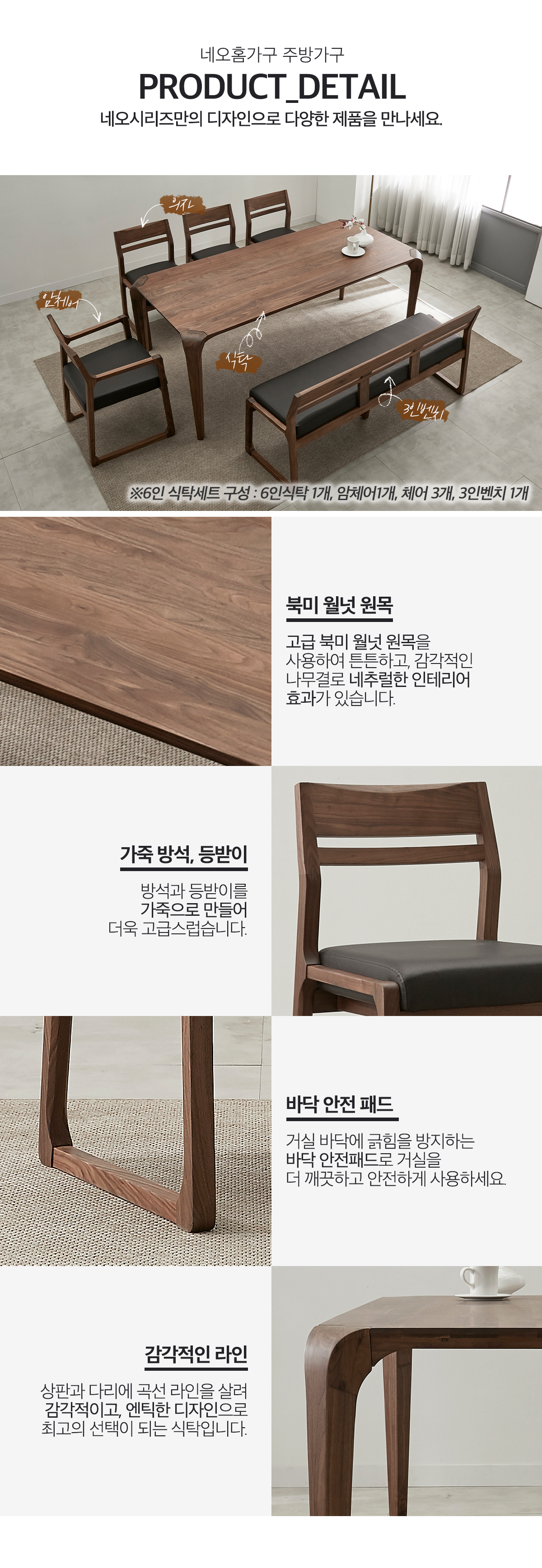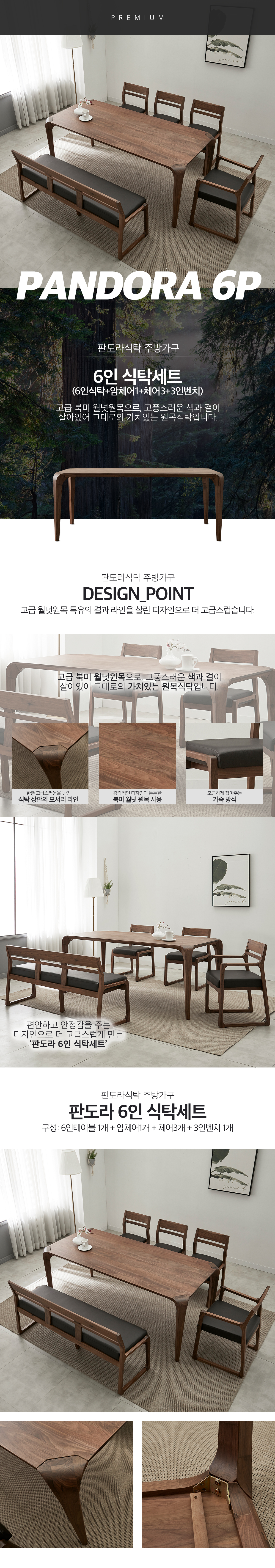 [한국탑퍼니처] 판도라 6인 식탁세트 B 월넛원목
