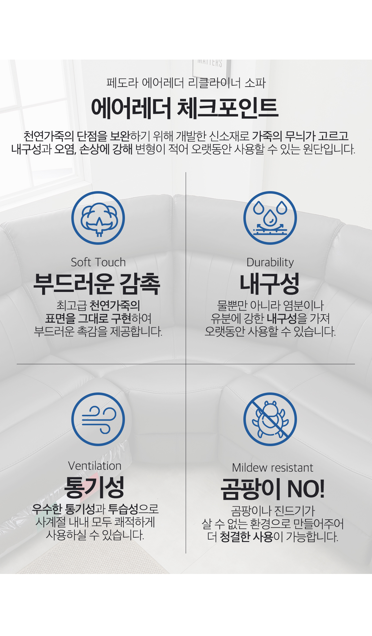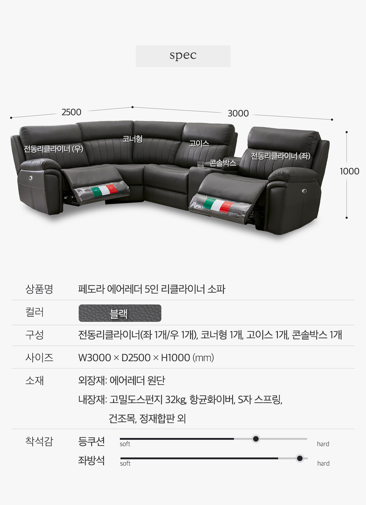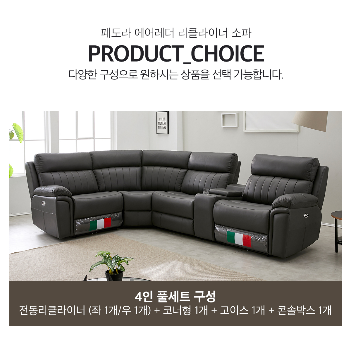 [한국탑퍼니처] 페도라 에어레더 5인 리클라이너 소파