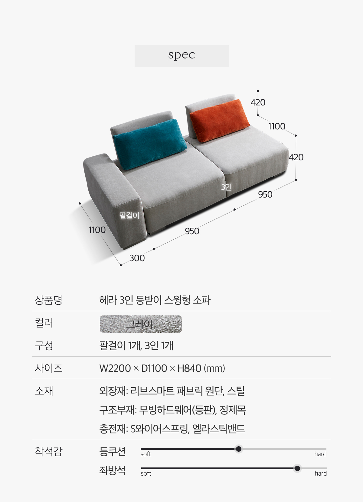 [한국탑퍼니처] 헤라 3인 등받이 스윙형 소파
