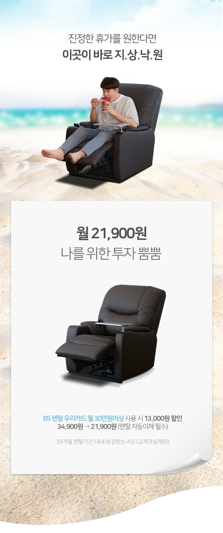 M08-1 웰릭스 [구르메] 1인용 리클라이너 소파 제품분류 쇼파 AS기간 렌탈기간내 최저 렌탈가 월 34,900 (렌탈가) 제휴카드 할인가 월 (렌탈가) 39개월 할인 제휴카드 보기 렌탈신청 장바구니